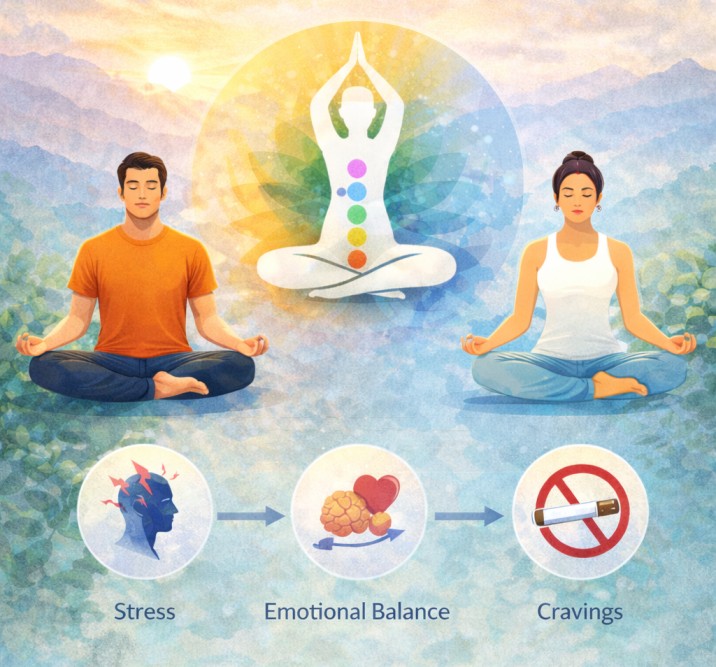 Explore how yoga and meditation reduce stress, control cravings, and support emotional balance during recovery.